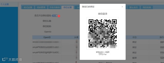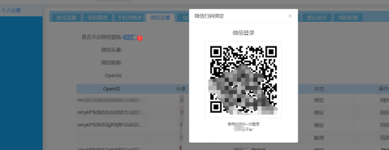 登录系统后,可在个人设置里绑定微信,下次登录系统里可直接使用微信扫码登录。如下图所示: