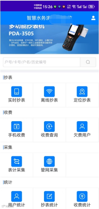 登录手机抄表后,根据菜单进行相关功能操作演示。