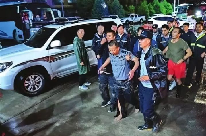 连夜搜救的分局局长王新明,因为太着急找人,脚下一滑摔倒了,也差点被洪水带走,最后靠着身边同事赶来扶起。