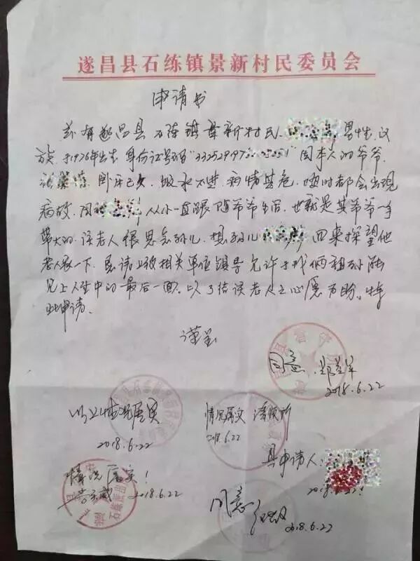 判决下来后,6月22日,遂昌县看守所收到了一封由张某彪家属寄出的请求信。信中写道:“因张某彪的爷爷卧床已久、病情甚危,随时都会病故,但内心一直牵挂着一手带大的孙子张某彪,虽然不能表达清楚,但是每天用含糊的家乡话与家人呼喊着张某彪,恳请相关单位领导让祖孙俩见上人生中的最后一面,以了结老人的心愿……”