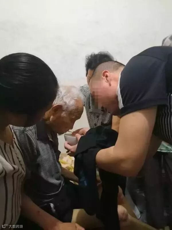 约30分钟后,爷爷似乎意识到了孙子的到来,突然睁开眼睛,猛地坐起来,甚至激动地想下床。张某彪端来一盆热水,亲自为爷爷洗漱。这个场景,让在场所有人都为之动容。