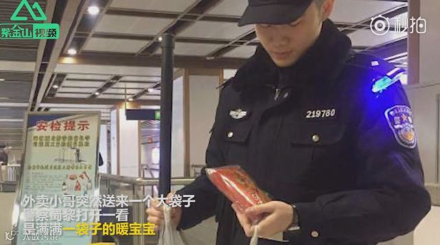 1、送暖宝宝给警察蜀黍 17日,南京地铁的警察小哥在三号线雨花门站执勤。突然外卖小哥送来一个大袋子,他打开一看,满满一袋暖宝宝!外卖单上备注:“交给闪灯站岗的警察!”原来是隔壁学校的00后的周同学买的,她担心在站口寒风中站岗的警察冷。(金陵晚报)