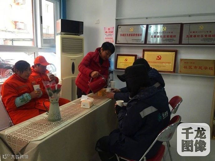 3、北京东城区总工会联合17个街道开展以“一杯热茶,温情暖冬”为主题的送温暖活动,在全区17个街道182个社区设立200余个免费饮水站点,给环卫工人、快递员等户外劳动者提供一个免费供应热水、短暂休息的场所。(@千龙网中国首都网)