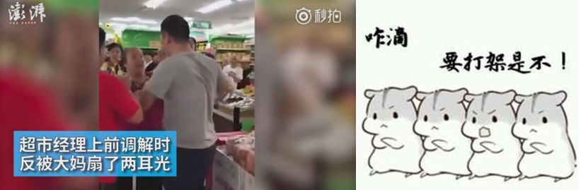2、大妈挑平价菜撕菜叶 近日,海南三亚一大妈在平价超市卖菜,任性违规撕包装,将限份额白菜装满车,遭营业员制止后开始叫嚣,其间还扇了超市经理2耳光,被超市方怒怼“卖给别人,也不卖给你”。(@澎湃新闻)