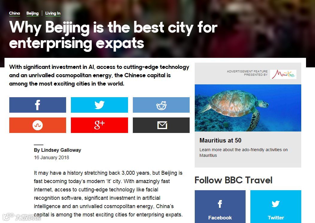英国广播公司(BBC)当地时间1月16日,发表文章《Why beijing is the best city for enterprising expats》(为什么北京是有创新精神的侨民的最佳选择),毋庸置疑,文章的主角,就是北京。