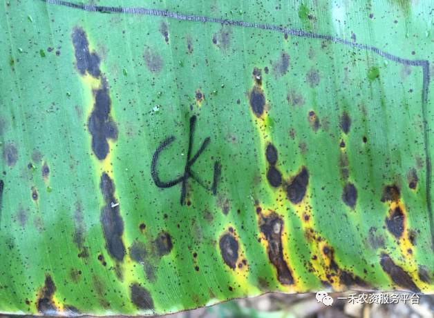 对初生灰纹叶斑病病斑具有治疗作用,病斑不扩展,颜色由黑色转为淡褐色