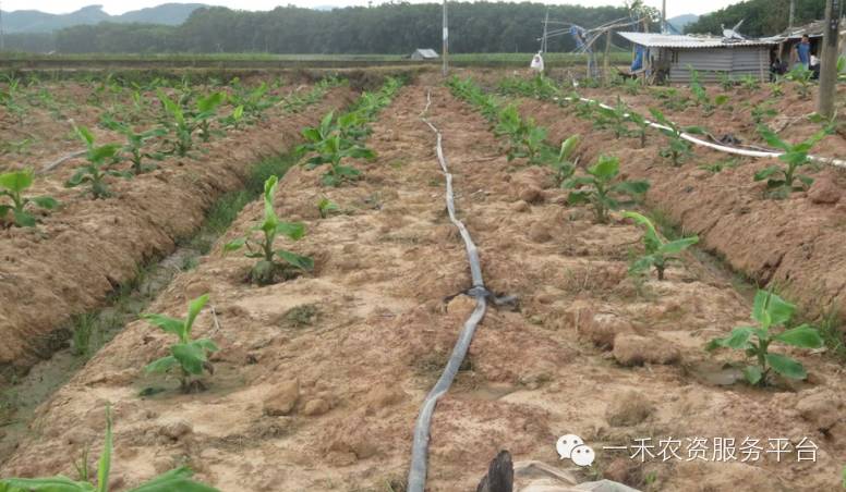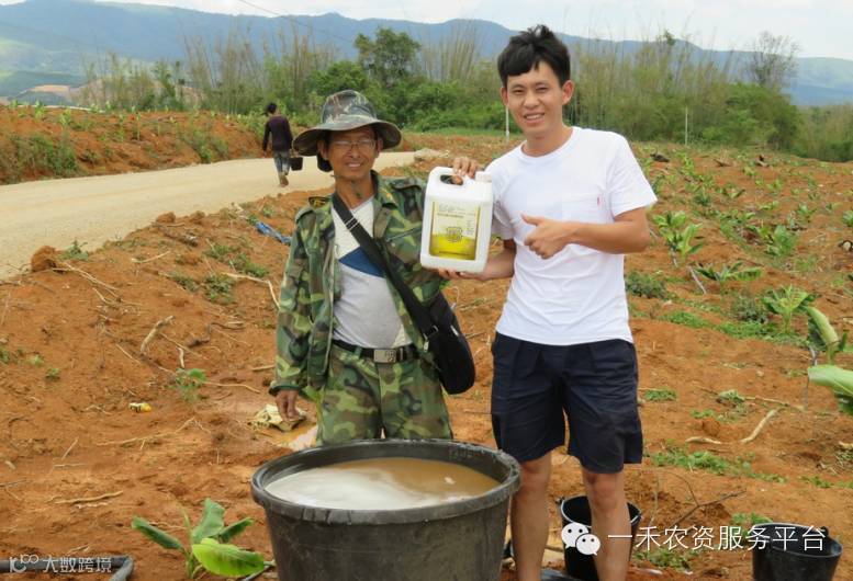 茎叶的表现:灌根的叶片很厚实,用手轻微折了一下,有液体流出来。而没灌根的则没有液体流出来。说明灌根的叶片吸收养分和水分很多,植株叶片比较厚实,光合作用也比较强,叶片明显深绿。俗话说:根深叶茂。香蕉对养分的吸收主要靠根系来完成,根系发达就能充分吸收养分,促使植物长得粗壮,枝繁叶茂,青葱翠绿。 而叶片则是整个植株光合作用的80%,绿叶数量多叶片面积大,叶片浓绿有光泽,从而提高香蕉的抗病和抗旱能力,是香蕉优质丰产的标志。