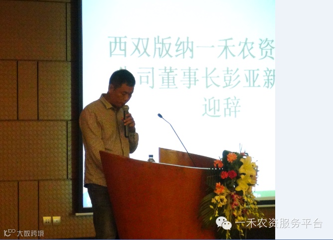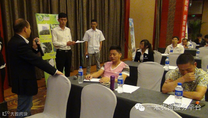 一禾农资的董事长致欢迎词,很荣幸与各位香蕉种植大户,聚集在一起,让我们一起分享各自种蕉的优质高产技术,让我们一起发财。