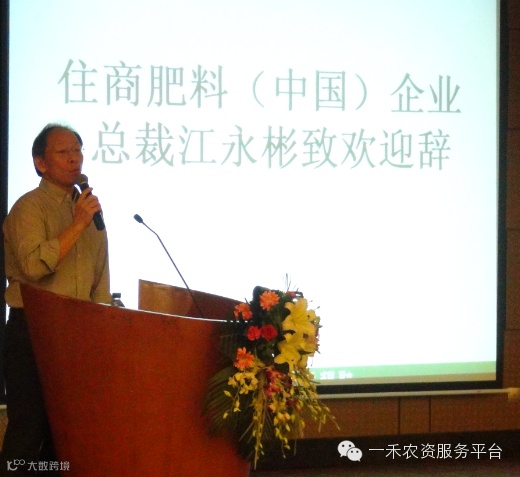 住商肥料(中国)企业集团总裁江永彬先生亲临现场,感谢各位商业人士的到来,并介绍住商肥料的缘由。