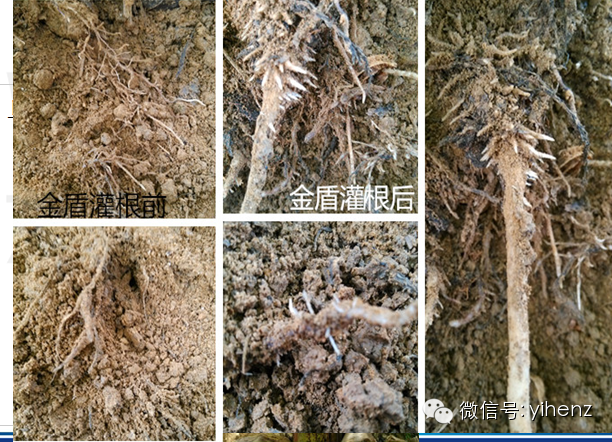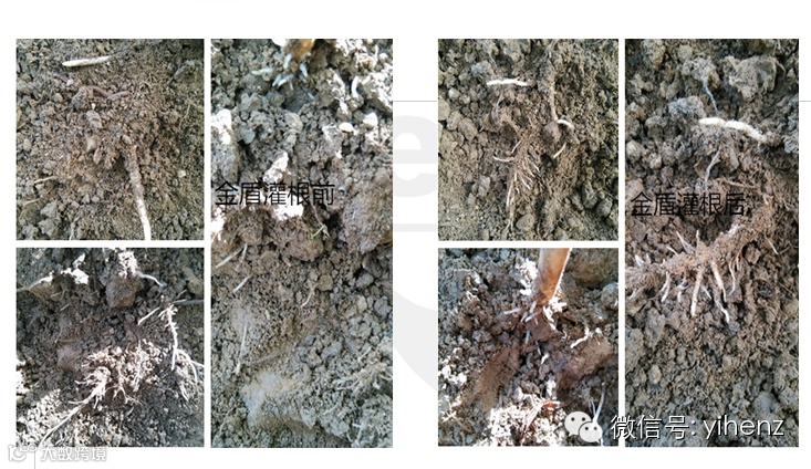 用了金盾灌根后的毛细根明显的比没有用过的更多。从而促进植株更好的吸收养分。