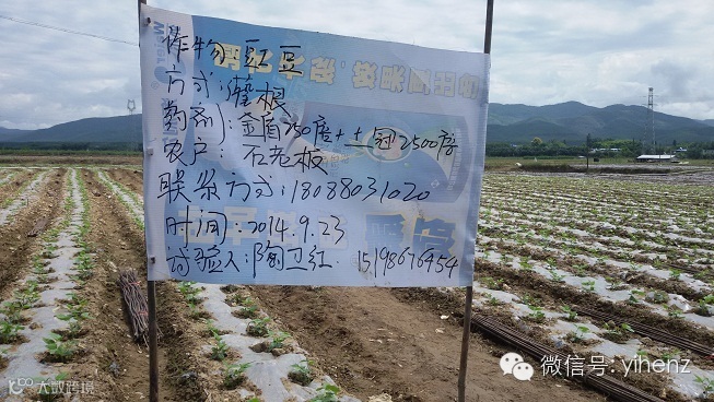 2014年9月23日11时45分,在烈日当头的版纳东风区域,我们驱车来到东风农场,由于之前多次的沟通交流,以我们 认真诚恳的态度,带着我们要将技术、服务与产品结合在一起的决心,最终打动了石老板,他同意我们在其豇豆地上,并划出部分田地作为我们做苗期金盾+土冠灌根试验的示范田地,因之前来到农场时,我们对其豇豆根系做出调研,以此为侧重点将我们的金盾与土冠推荐给他,所以石老板才热情地接受了我们的建议。