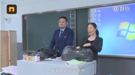4、高三夫妻档教师,高考前为学生开party送礼物 17日,哈尔滨一中学夫妻档教师为班里的高三学生准备了特别的礼物——尺子和镜子,寓意量人量己,以人为镜。有学生称老师很佛系,成绩可以不好但做人要善良。(@人民网)