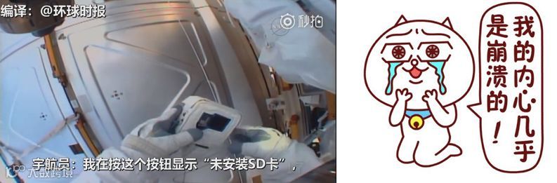 2、美宇航员在国际空间站上拿出相机准备拍摄,却发现SD卡忘在地球上了! 16日,一名美国宇航员在国际空间站上想拿出相机拍摄,但是遇到了技术问题,他按下按钮后,这台相机却不能录像。在和地面工作人员联系后才找到了原因:相机的SD储存卡忘装了。据报道,NASA称这名宇航员自带相机的储存卡应该是忘在地球上了。(@环球网)