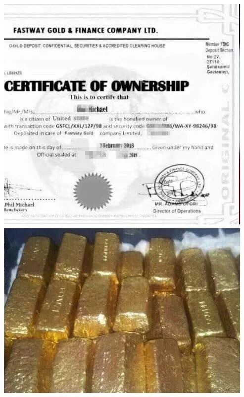 还发来了黄金和证书的照片