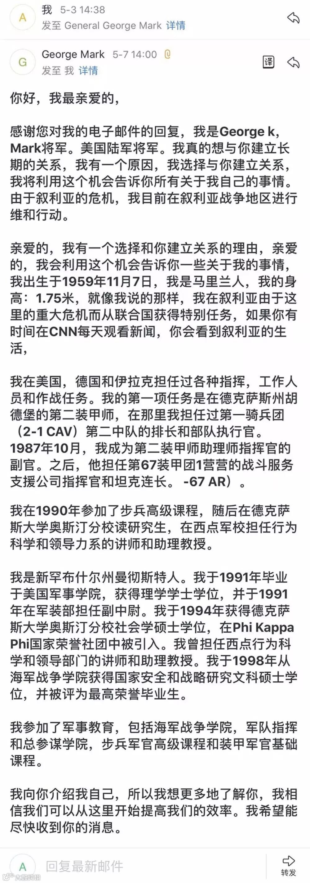 是冒充“美国大兵”诈骗的初级版本