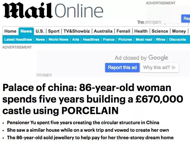 “连外国人都来采访呢!”,瓷宫出名后,不仅国内的采访不断,还登上了《每日邮报》。