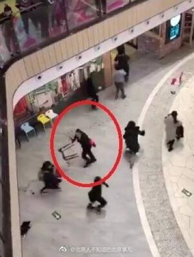 一名商场保安,抄起一把椅子,逆着奔跑的人群挺身而出,义无反顾的朝危险奔去……
