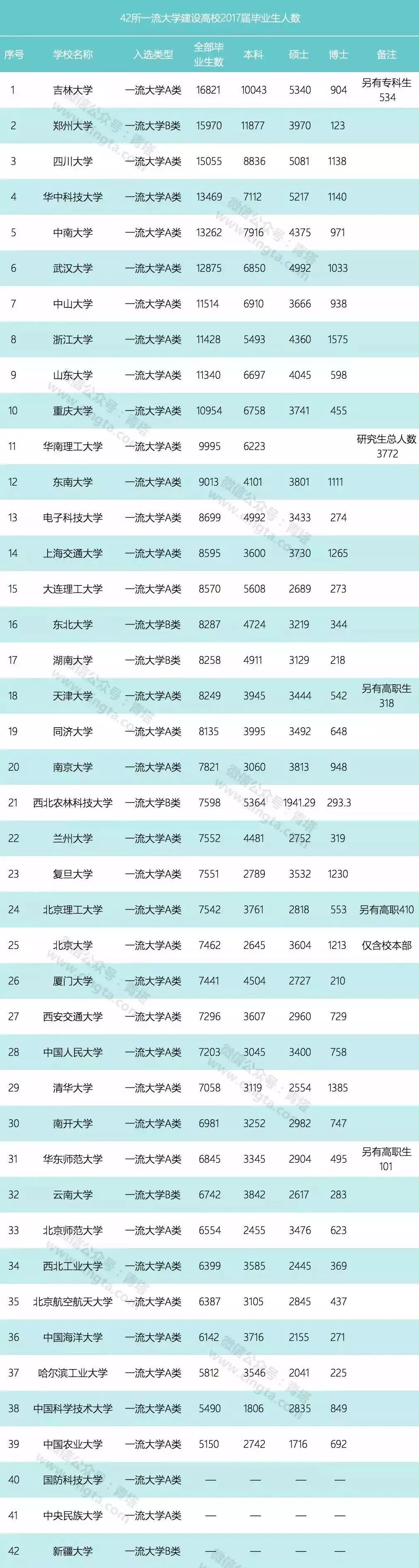 7、35万“一流大学”毕业生就业去向出炉! 截至目前,42所一流大学建设高校中,已经公布就业质量报告的39所高校毕业生总数达到34.75万,其中本科生达到18.84万,硕士生达到13.16万,博士生达到2.62万。(半月谈微信公号)