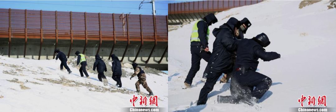 4、为了安全! 1日即春运首日,乌鲁木齐公安处乌拉泊高铁警务区民警与巡防保安冒着零下二十六度严寒,顶着八级大风,采取车巡、步巡方式对所管辖高铁线路进行全方位巡视,排查一切不安全隐患,确保了春运首日高铁线路运行安全。(中国新闻网)