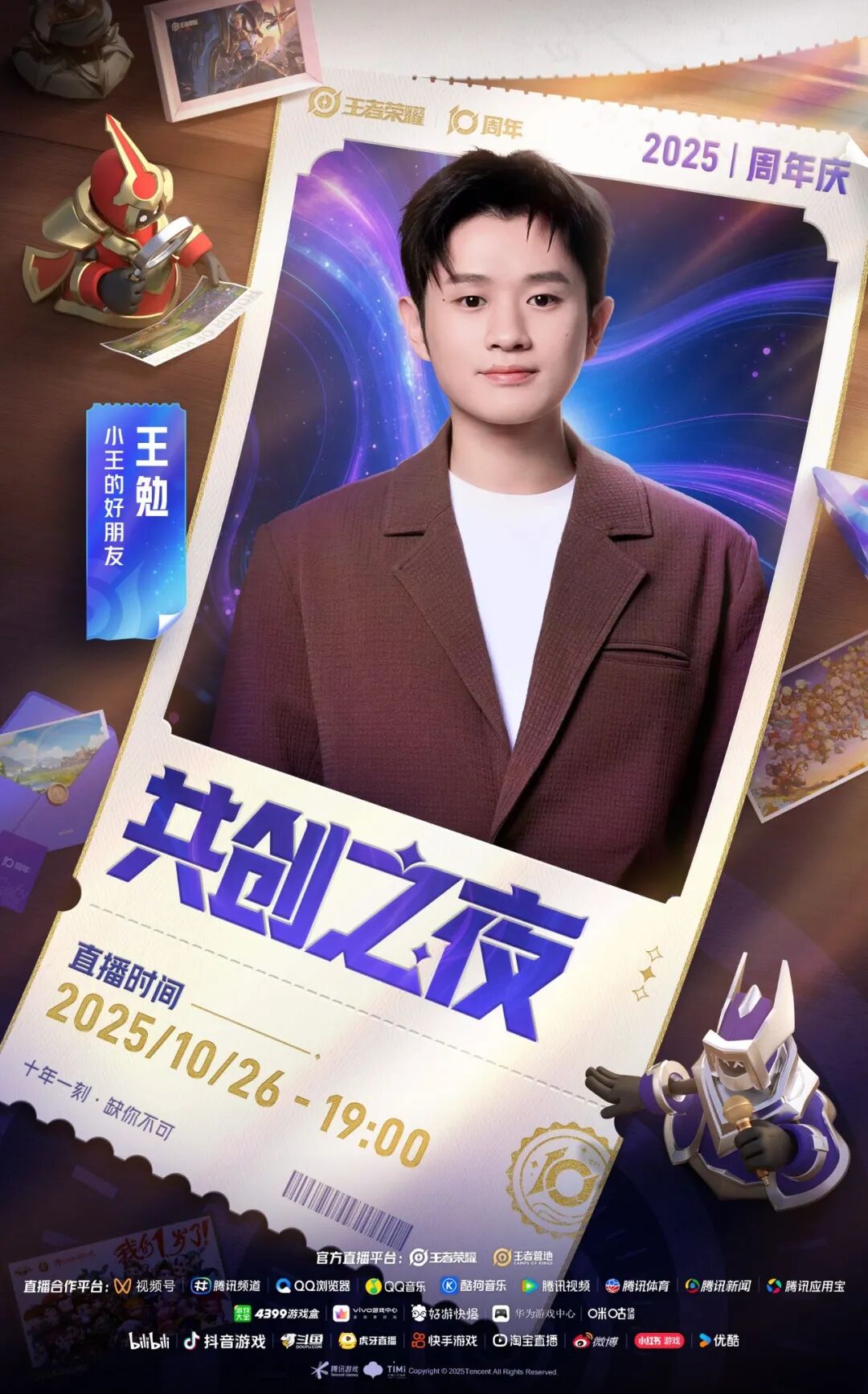 本周三,王勉官宣参加“王者荣耀共创之夜”。十年征程,共赴荣耀,小王的好朋友小王前来报到!