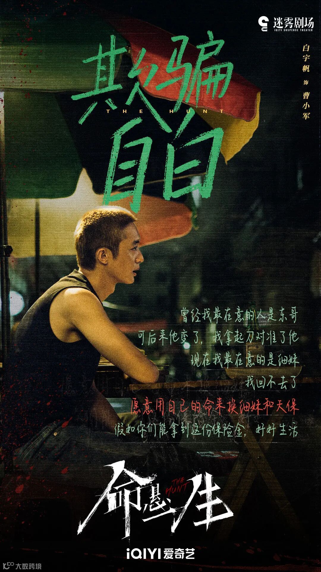 白宇帆饰演曹小军,泣血搏生,罪爱同存。甘愿设局,藏真心不言悔。