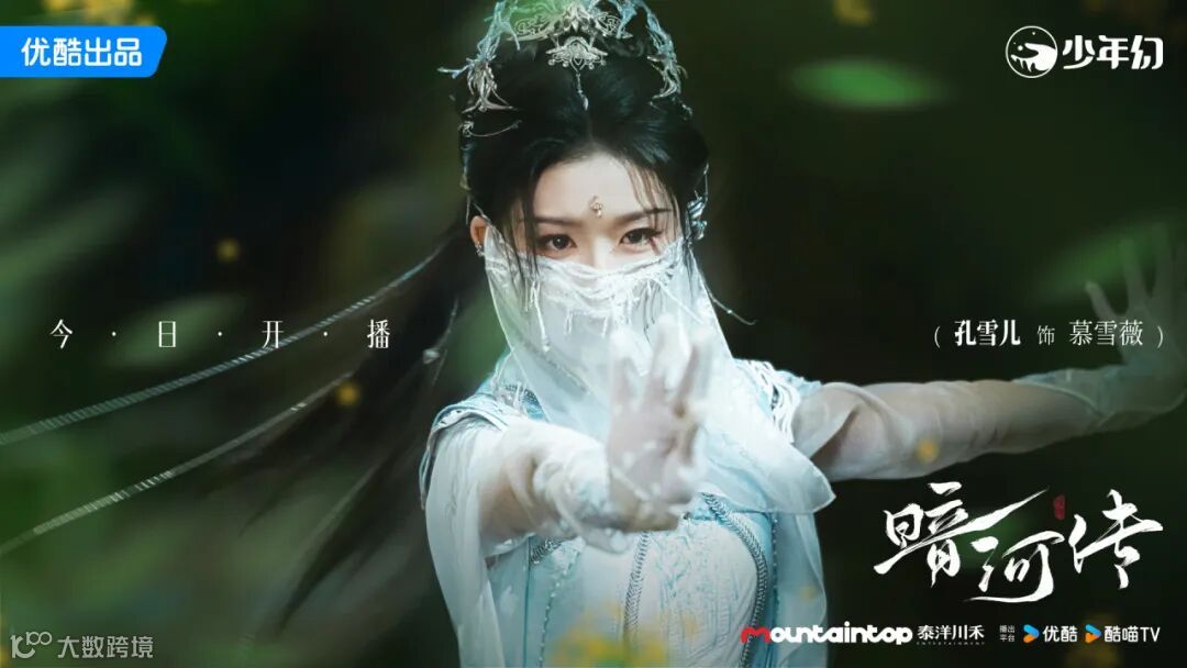 本周一,由孔雪儿领衔主演的古装武侠剧《暗河传》正式开播,并于本周四优酷站内热度值破9500!