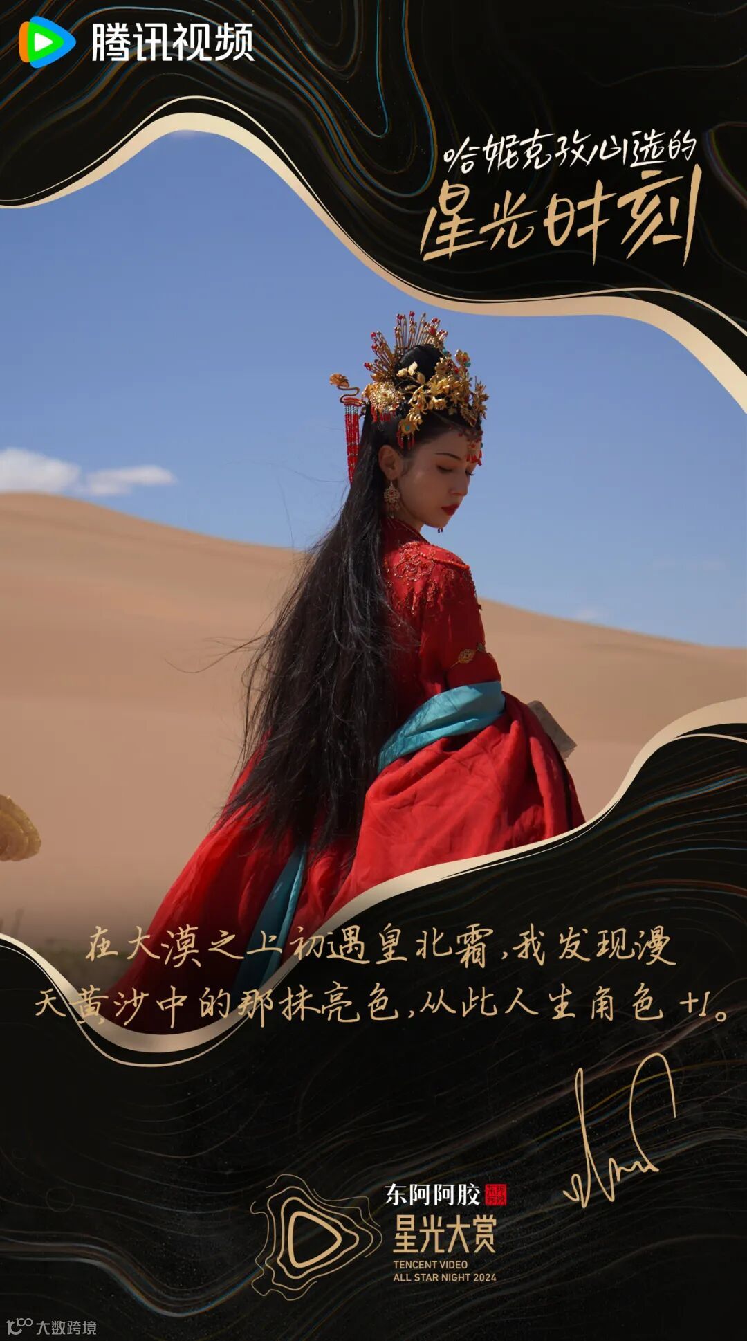 本周五,哈妮克孜官宣出席2024“腾讯视频星光大赏”。目之所及,心之所向,抵达热爱。2025年1月4日,中国澳门,共赴盛典。