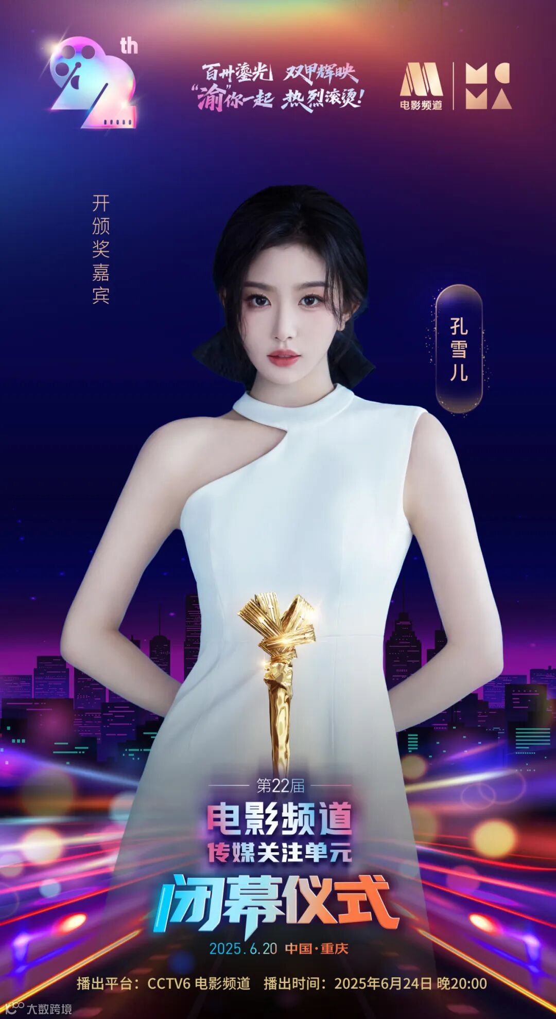 本周五,蒋勤勤、郑希怡、孔雪儿作为“闭幕仪式开颁奖嘉宾”官宣参加第22届“电影频道传媒关注单元”。6月24日晚20:00锁定CCTV-6 20:00,见证荣誉,共赴光影盛会!
