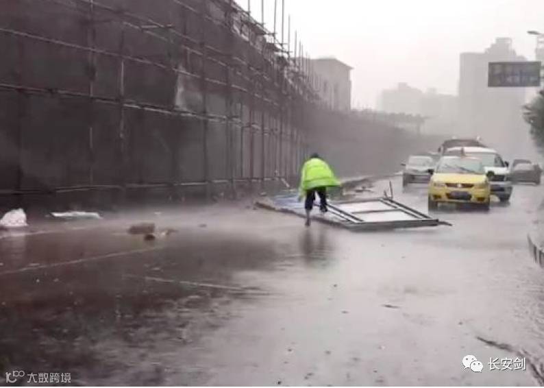 8月2日晚,北京市房山区因暴雨淹没道路,为避免车辆进入深水路段,武警官兵手拉手筑成人墙,警示来往车辆不要前行。不仅在北京,8月2日下午,重庆九龙坡遭遇强对流天气。狂风暴雨中,一工地的护栏倒塌。为保证道路畅通,一名交警努力将护栏扶起。