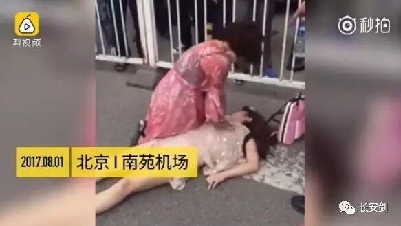 还有这位穿红衣服的救人者——8月1日,在北京南苑机场外,一女孩突然晕倒窒息,来自陕西西安的游客康女士挺身救人。