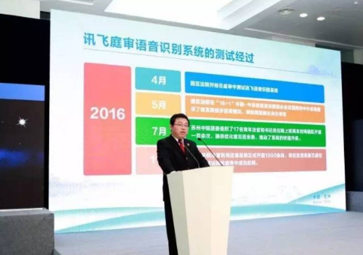 2016年4月,苏州中院开始在庭审实战中,测试使用语音识别技术——“智能速记员”。这个“智能速记员”能将语音自动转化为文字,自动区分庭审发言对象及发言内容,法官、当事人和其他参与人,均能看见转录文字。