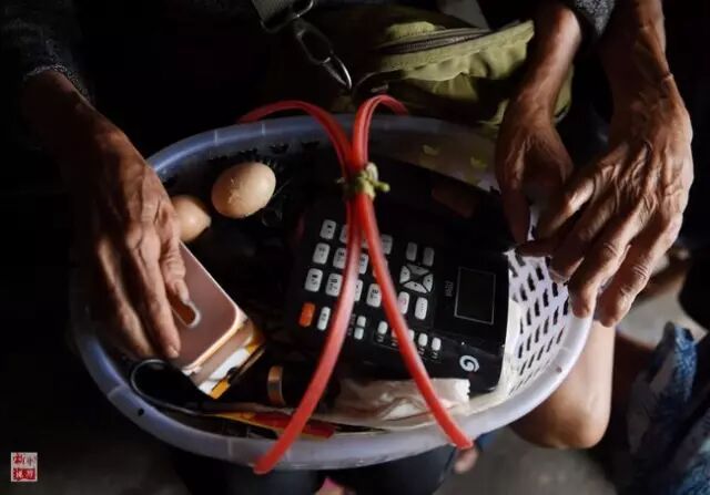 湖南益阳市新桥河镇八一村崔秋英老人被营救转移时随身携带的篮子里装着电话机、鸡蛋等物品(7月1日摄)。新华社记者李尕摄