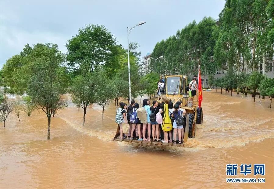 广西师范大学雁山校区因河水倒灌,汛情紧急。学校已启动应急预案,安排了铲车救援受困学生,并为受困学生免费送盒饭。