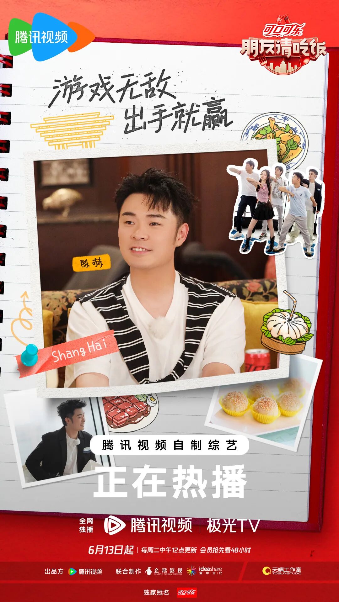 本周二,由腾讯视频自制的综艺《朋友请吃饭》第九期播出。本期节目中,陈赫开启探访上海美食的旅程,化身游戏王,出手迎来三连胜。