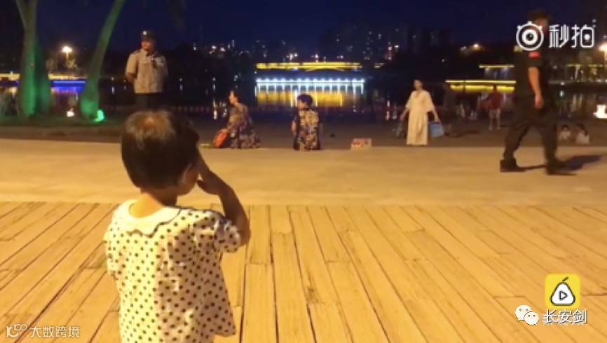 4、2岁女孩见到特警路过自发敬礼长达11秒 让每位警察泪奔 新疆昌吉一位2岁半的宝宝在公园玩耍,看到一队身穿制服的巡逻队员走过,小姑娘站直,举起小手向他们敬礼,场面动人。警察,你们辛苦了!(梨视频)