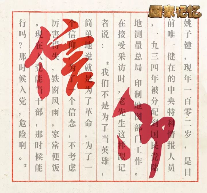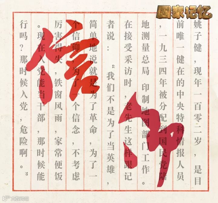 “我们不是为了当英雄,简单地说就是为了革命,为了一个信仰,为了一个信念,不考虑厉害得失,铁窗风雨,家常便饭。现在入党能当干部,那时候能行吗?那时候入党,危险啊。”