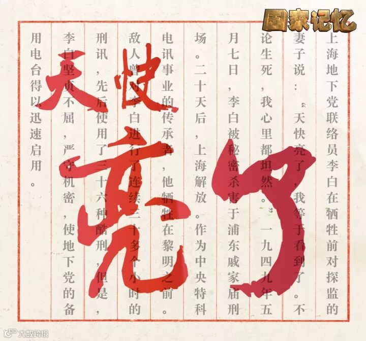 敌人曾对李白进行了连续30多个小时的刑讯,