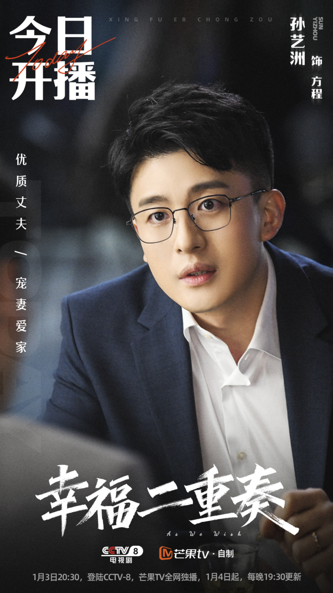 本周一,由孙艺洲领衔主演的都市情感《幸福二重奏》在芒果TV&央视八套播出。该剧讲述了都市“好女好男”,在生活与职场的人际关系中,解锁夫妻与朋友之间最自洽的相处之道,寻找幸福真谛的故事。孙艺洲在剧中饰演“佛系好男”方程。
