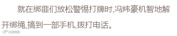 图为仓库里,冯炜豪被“绑匪”绑了起来。
