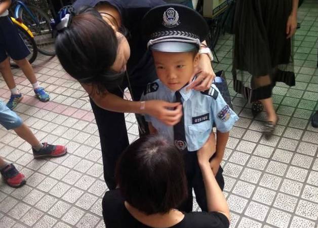 9月2日,广州海珠区南华西派出所,穿着警服的孩子冯炜豪回答。为了让重病患儿冯炜豪圆警察梦,十几个大人和警察,协助他“卧底”,成功抓获拐卖妇女儿童的“绑匪”。