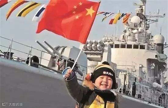 一个是被海军小姐姐牵着小手,迈着轻盈的步伐,踏上了接她回家军舰的中国小女孩。
