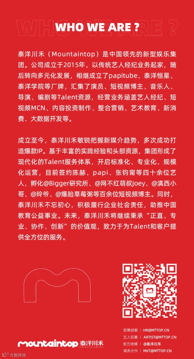 我们将不定期安利泰洋川禾的“后浪”们,并尽可能地展现他们最真实的一面,希望你们能从他们身上感受到新人演员的精神和面貌。