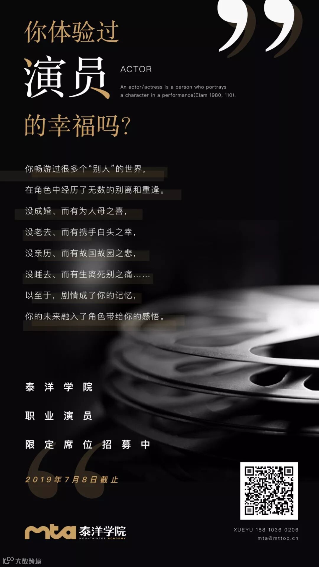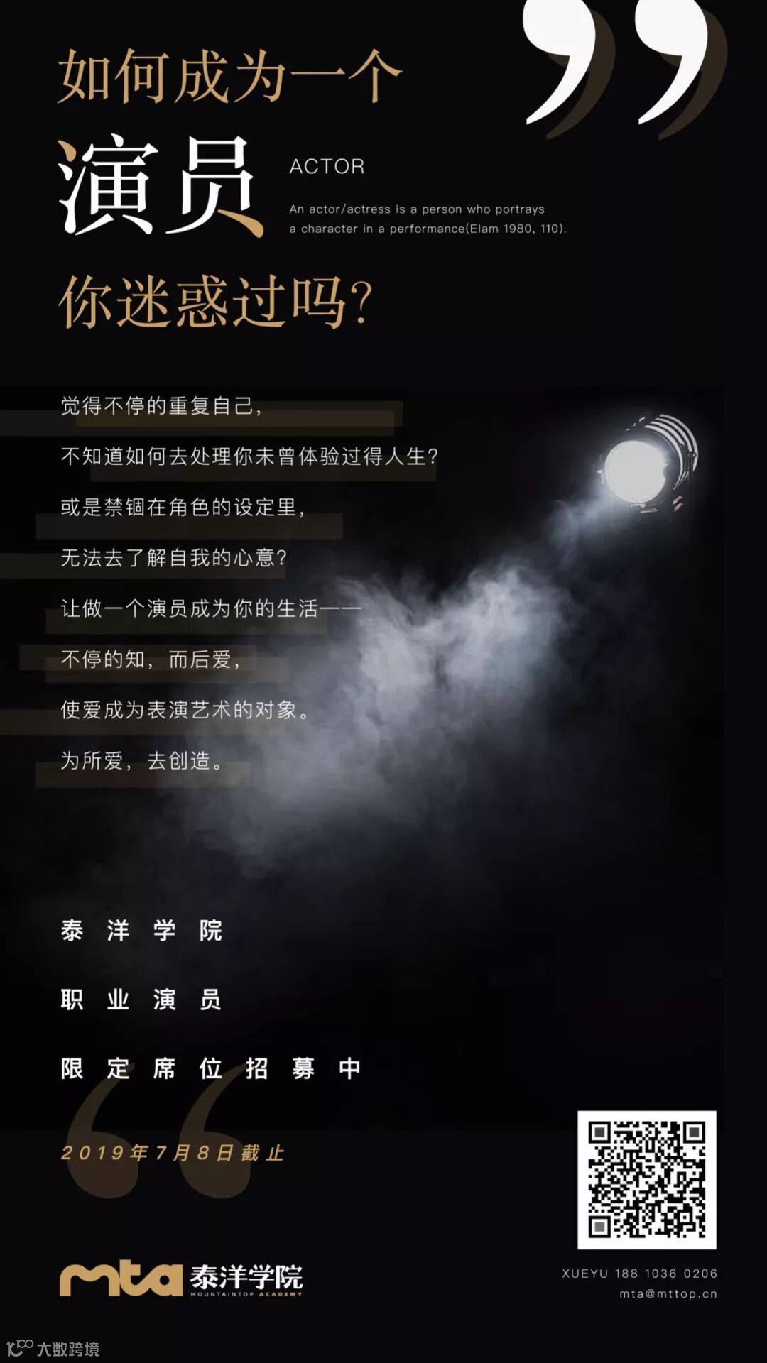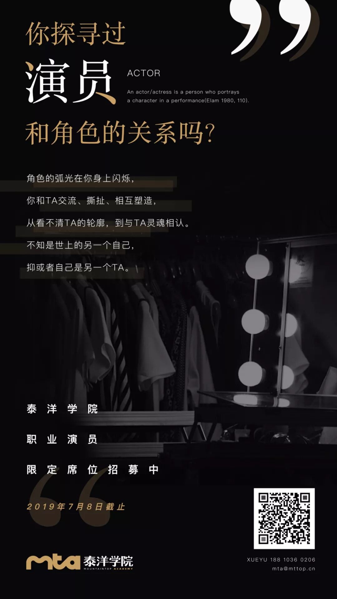 欢迎你来MTA做演员职业进阶训练,