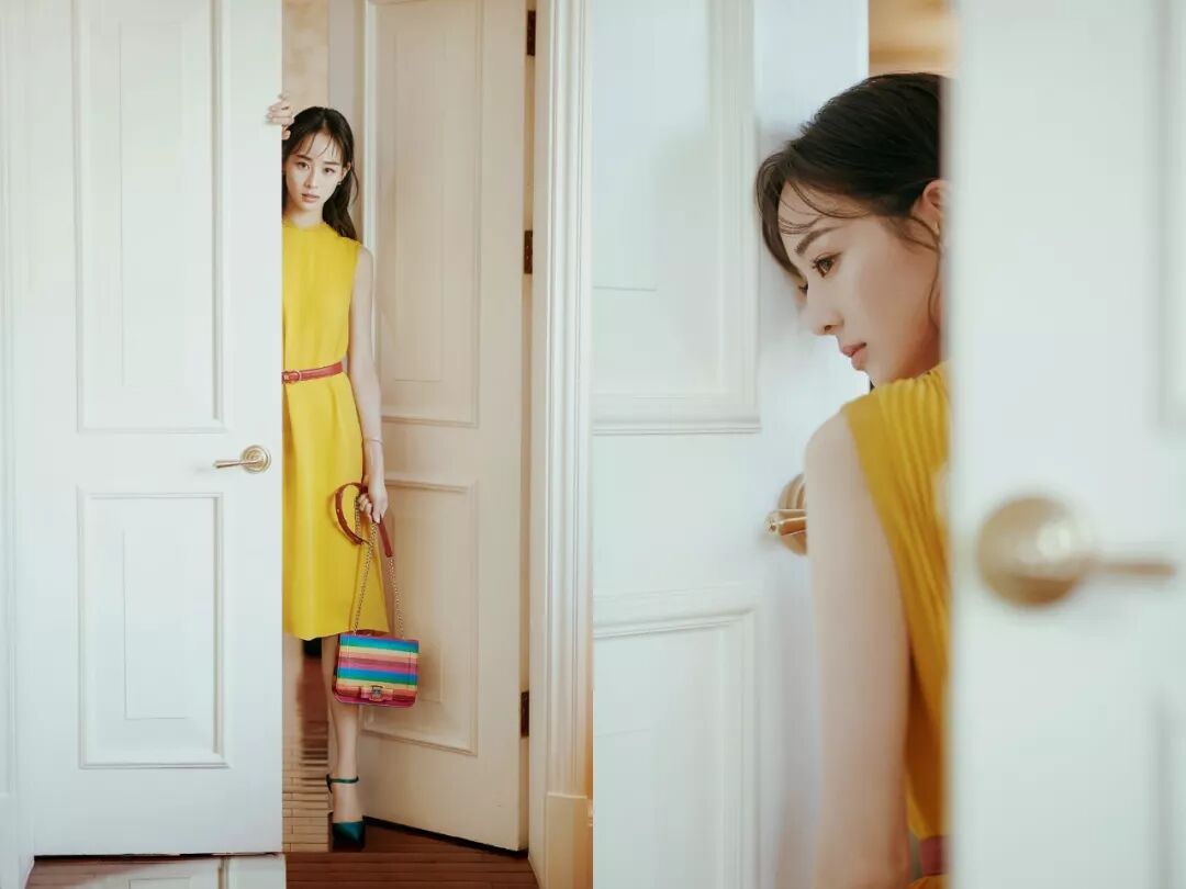 张钧甯以一袭明黄色无袖连衣裙搭配红色金属环腰带,精致优雅又复古浪漫,配色大胆个性但毫不违和,水蓝色尖头高跟鞋设计感十足,彰显出她独特的时尚态度。