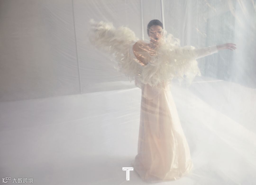 此组大片在虚实之间营造神秘色彩,冬叔颠覆鬼马精灵形象化身黑天鹅,构造出一副充满奇思妙想与女性力量的新世界。