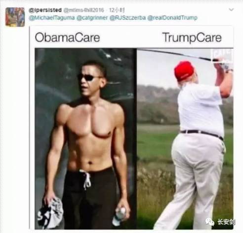 “在我心中,‘奥巴马医改’效果是左边这样的,‘特朗普医改’效果是右边这样的。要是你,会选谁家的医改方案呢?”