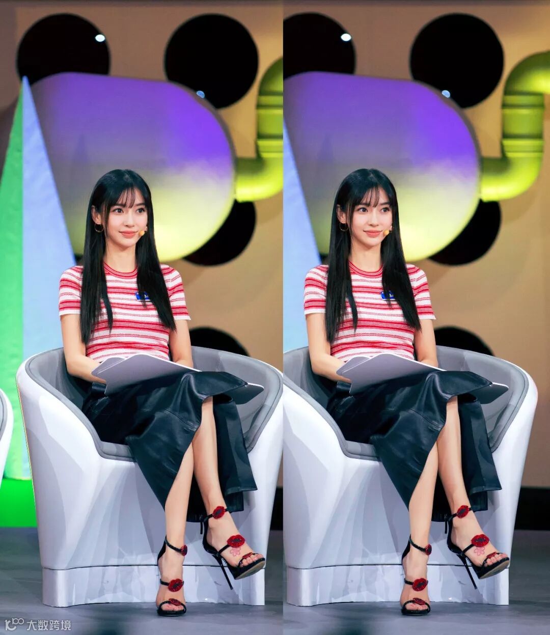 当晚,baby身穿红白条纹毛衣与黑色皮裙也是吸睛无数,无论是坐在那巧笑倩兮还是热烈与嘉宾互动之时,都尽显明媚笑容,一双纤细长腿更是满满少女感。