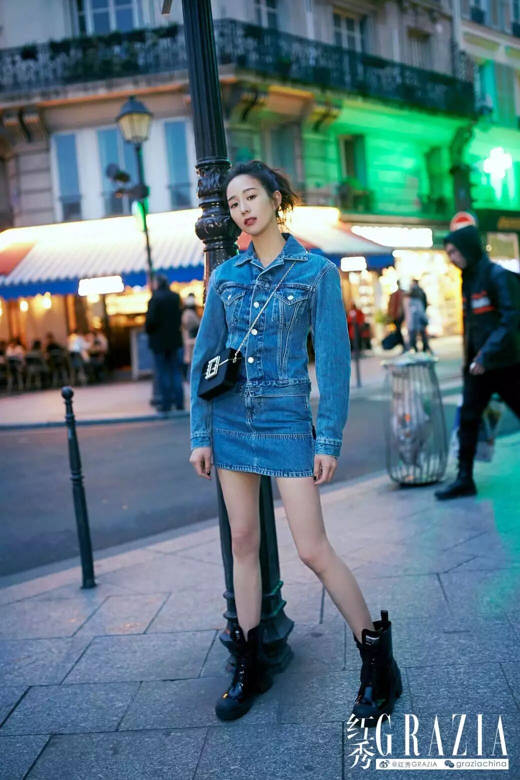 另一组街拍中,张钧甯则以蓝色为基调呈现了三套穿搭,摩登复古又很港~