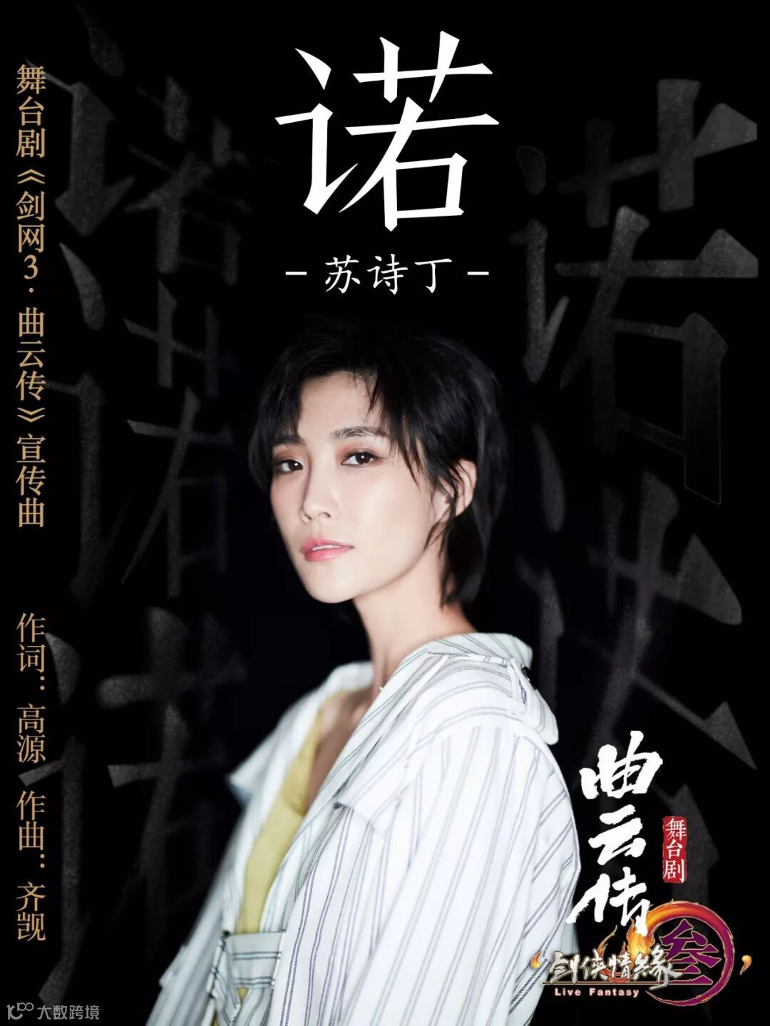 今日(9月11日),苏诗丁为大型网游舞台剧《剑网三·曲云传》演唱的宣传曲《诺》正式上线(音源请戳QQ音乐)。苏诗丁用她柔情中带着铿锵的声音,将歌曲的摇滚韵味演绎的淋漓尽致。