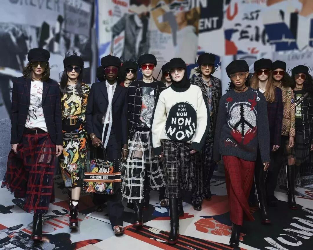 之前的迪奥二零一八秋冬成衣系列,印有标语的上衣简洁个性,中号“Diorquake”手袋搭配复古金属Oblique花纹肩带,同花纹木屐鞋点亮整身造型,于街头散发潇洒率性的迷人魅力。